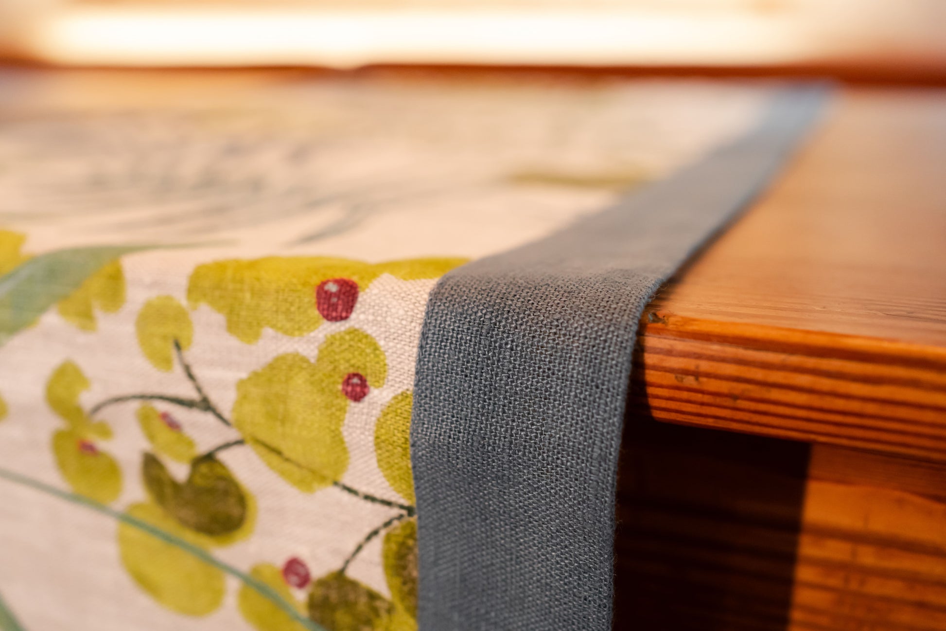 Runner in lino stampa foglie con bordo